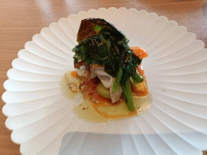 ■ とうもろこしとチーズのラビオリ 諫美豚の生ハム添え