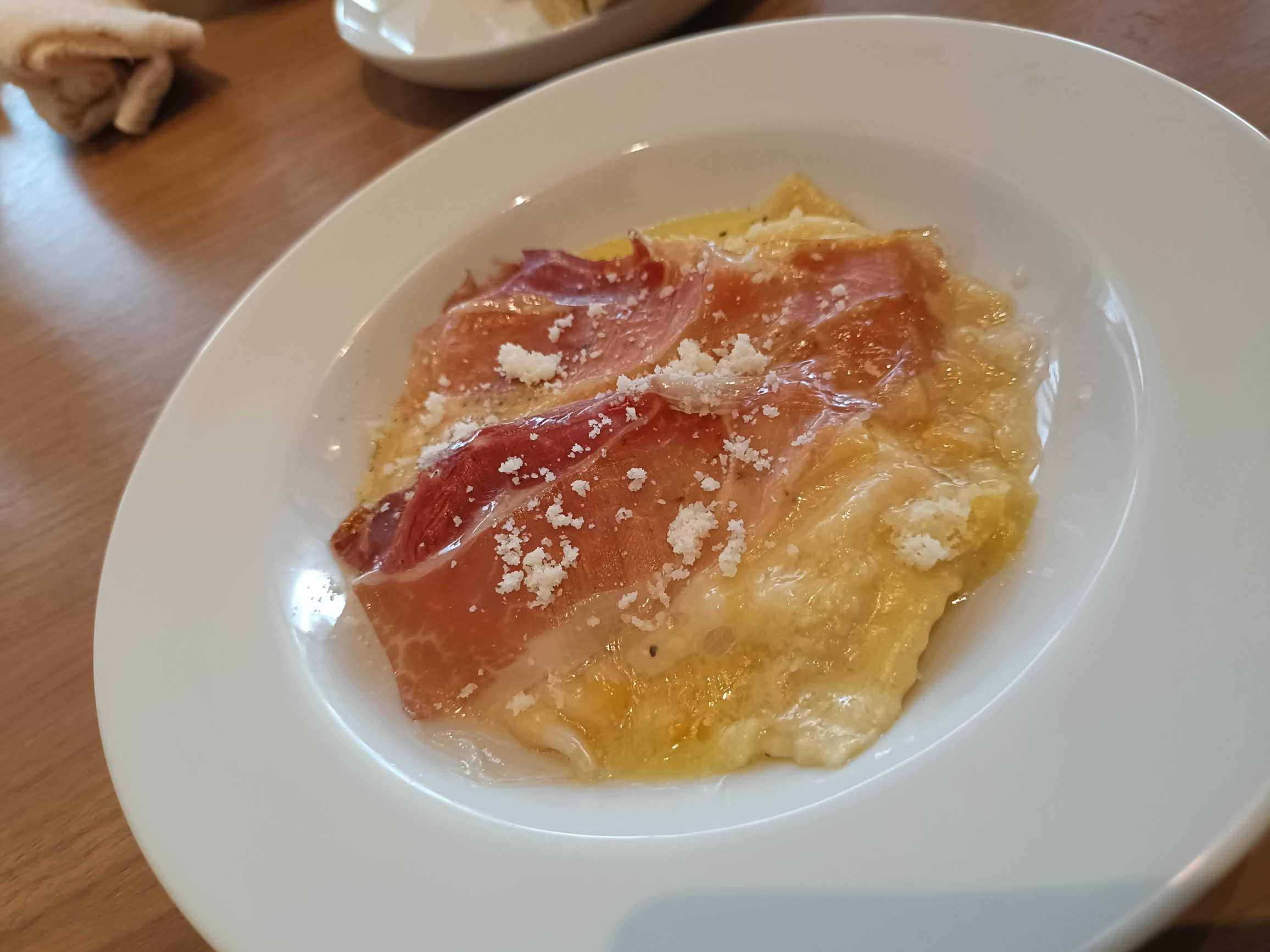 とうもろこしのラビオリと生ハムとの組み合わせは以前もありましたが