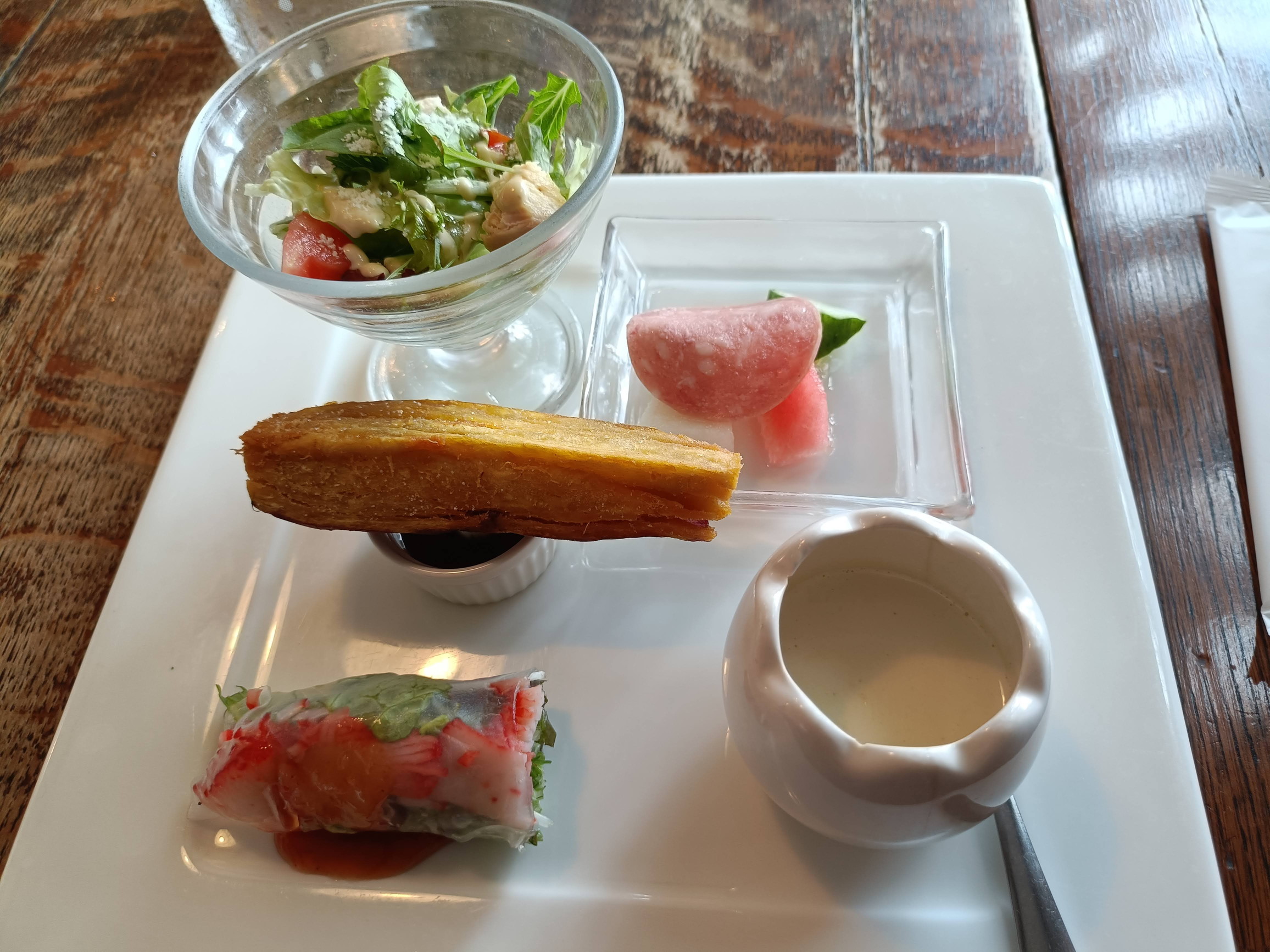 サラダやスープや生春巻きとかピクルスがあって
