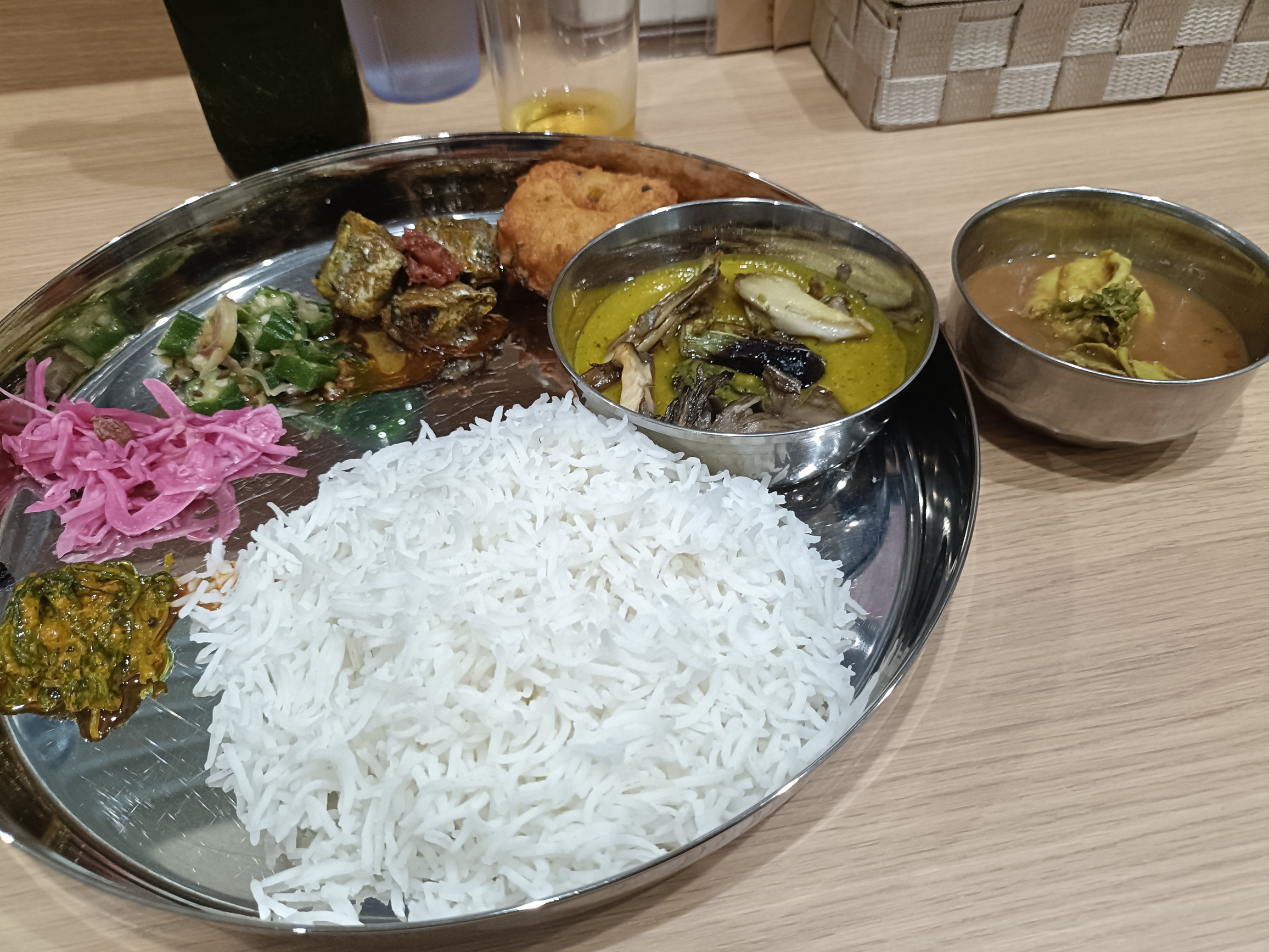 カレーが二種類+7種類の料理+バスティマライスという構成
